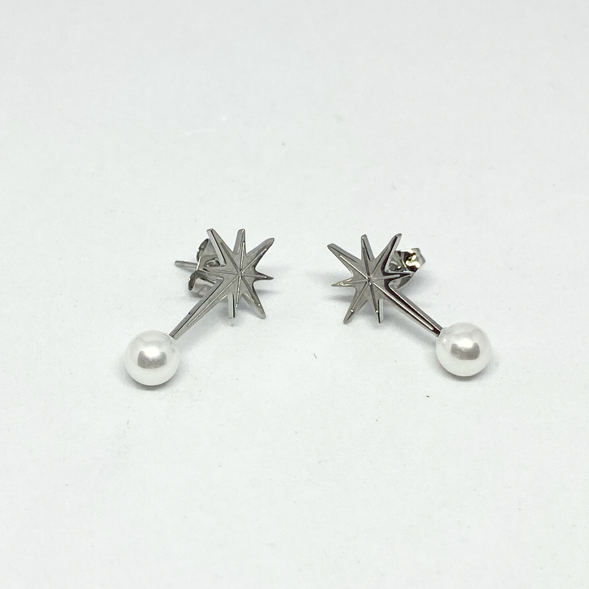 Boucles d’oreilles perle et argentée en acier inoxydable