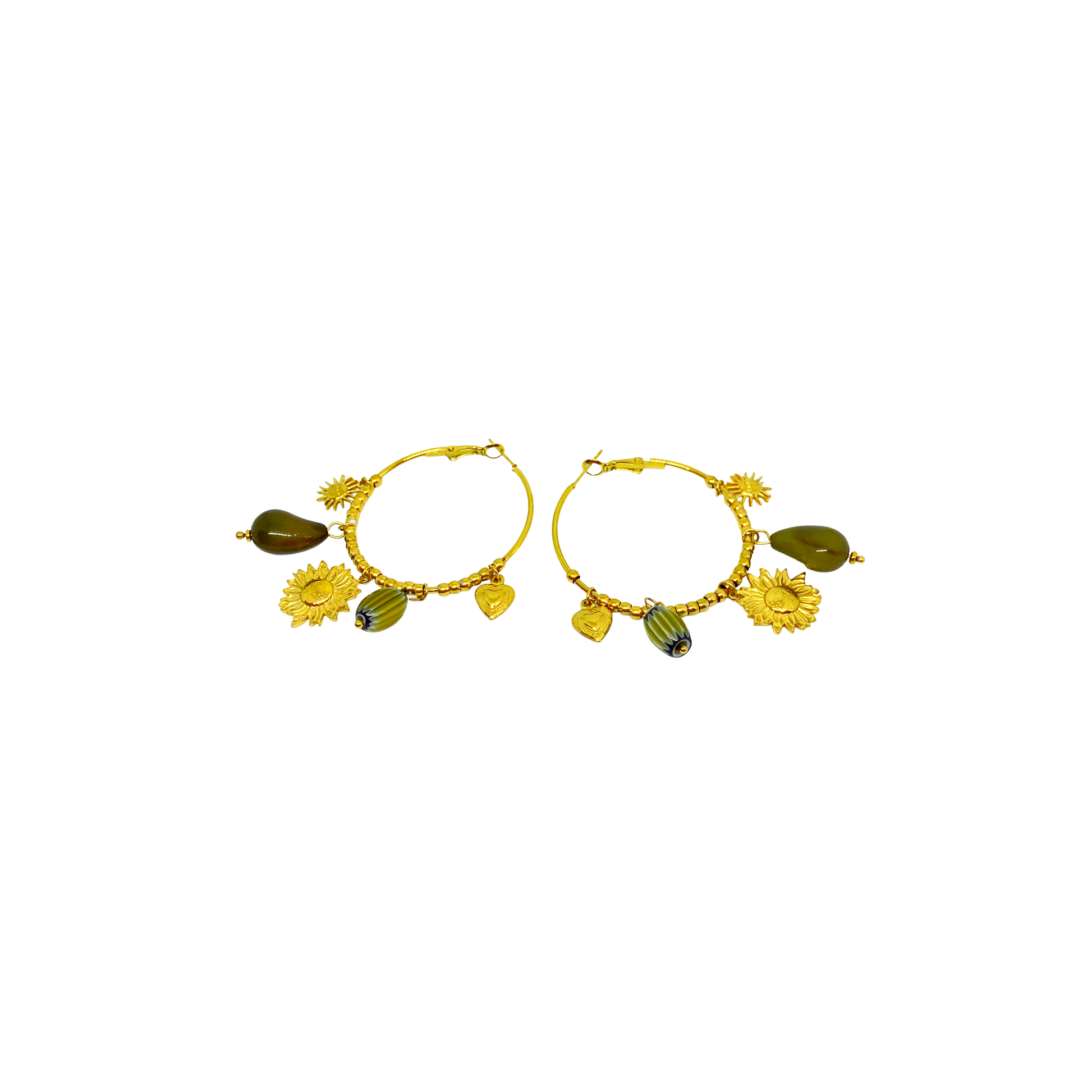 Boucles d'oreilles dorées et vert en acier inoxydable.