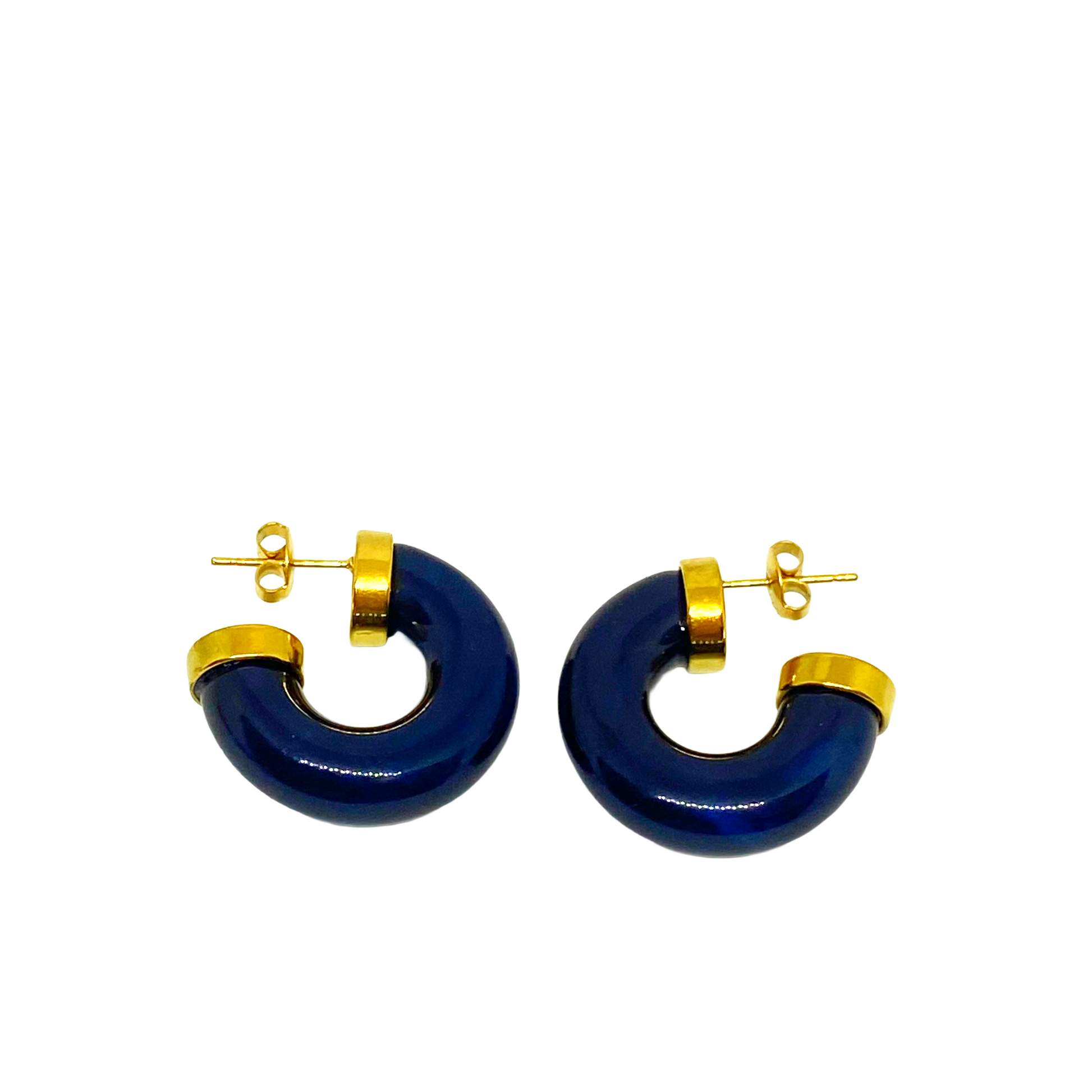 Boucles d'oreilles dorées et bleu en acier inoxydable.