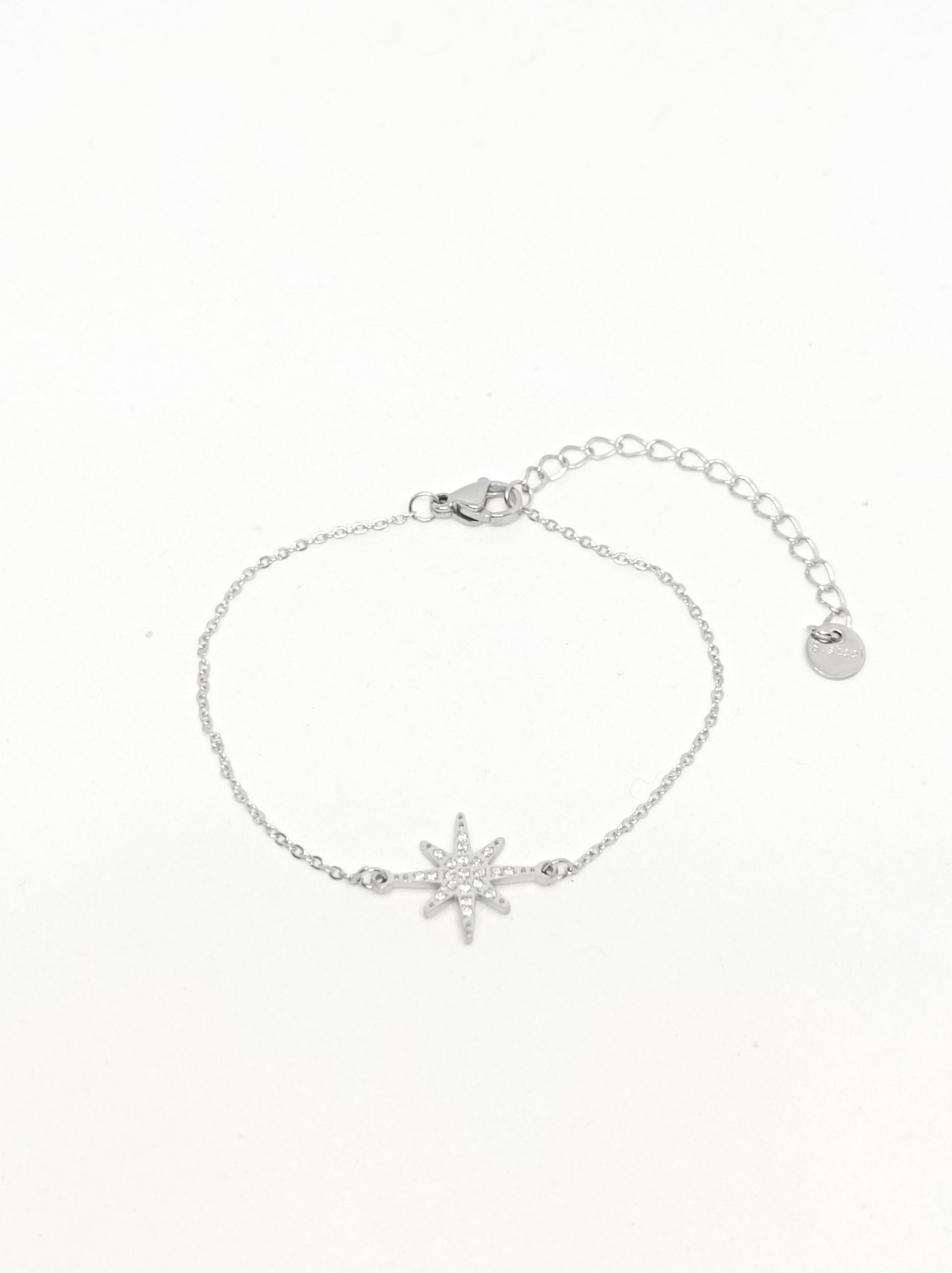 Bracelet argenté en acier inoxydable.